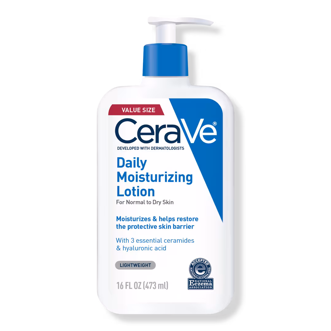 CeraVe Daily Moisturizing Lotion is a lightweight, oil-free lotion formulated to provide 24-hour hydration while helping restore and maintain the skin’s natural protective barrier. Developed with dermatologists, this gentle formula features three essential ceramides and hyaluronic acid to lock in moisture, support barrier health, and leave skin feeling soft and comfortable without heaviness or greasiness. The patented MVE Technology ensures a steady release of moisturizing ingredients throughout the day.