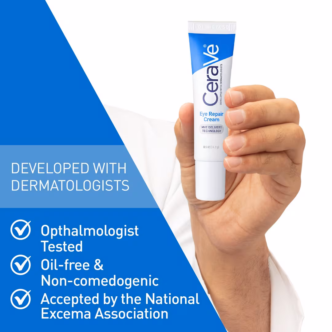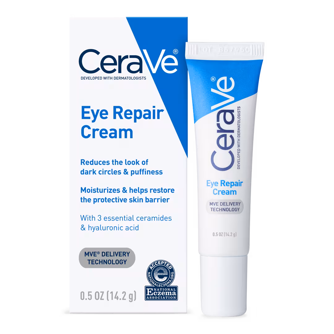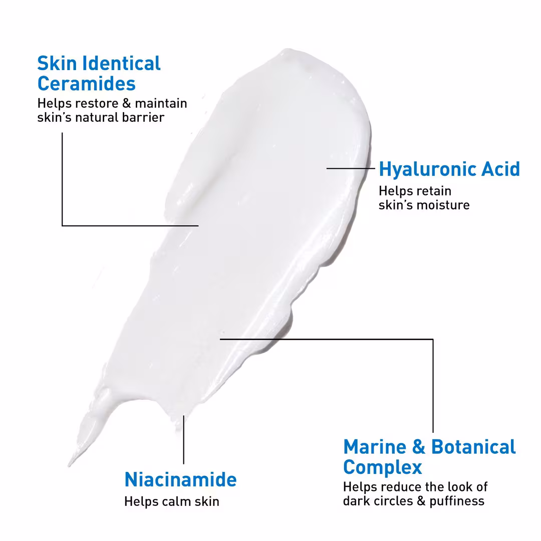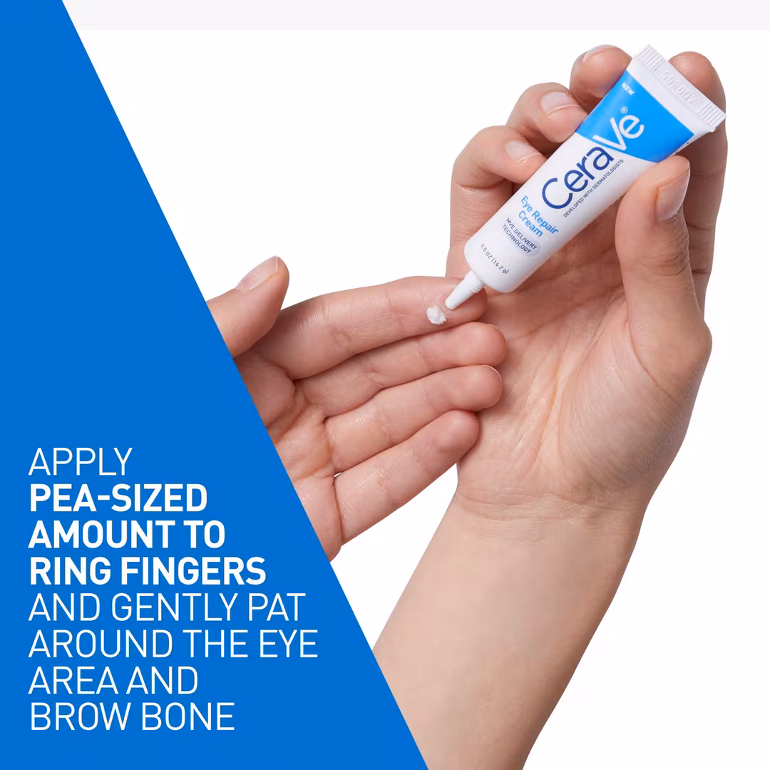 CeraVe Eye Repair Cream is a gentle, dermatologist-developed eye cream designed to hydrate and restore the delicate skin around the eyes. Formulated with three essential ceramides, hyaluronic acid, and niacinamide, this lightweight cream helps strengthen the skin’s natural barrier, smooth the under-eye area, and improve overall comfort.