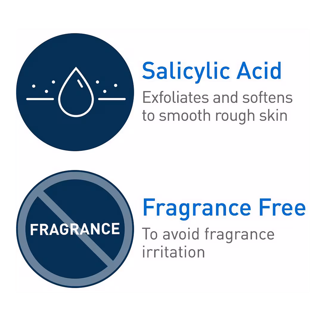 CeraVe SA Cream for Rough and Bumpy Skin is a dermatologist developed body cream designed to help exfoliate and smooth rough, bumpy areas while providing lasting hydration. It features salicylic acid to gently remove dead skin cells and promote smoother texture. The formula also includes ceramides to help restore and maintain the skin’s natural protective barrier, and hyaluronic acid to attract and retain moisture.