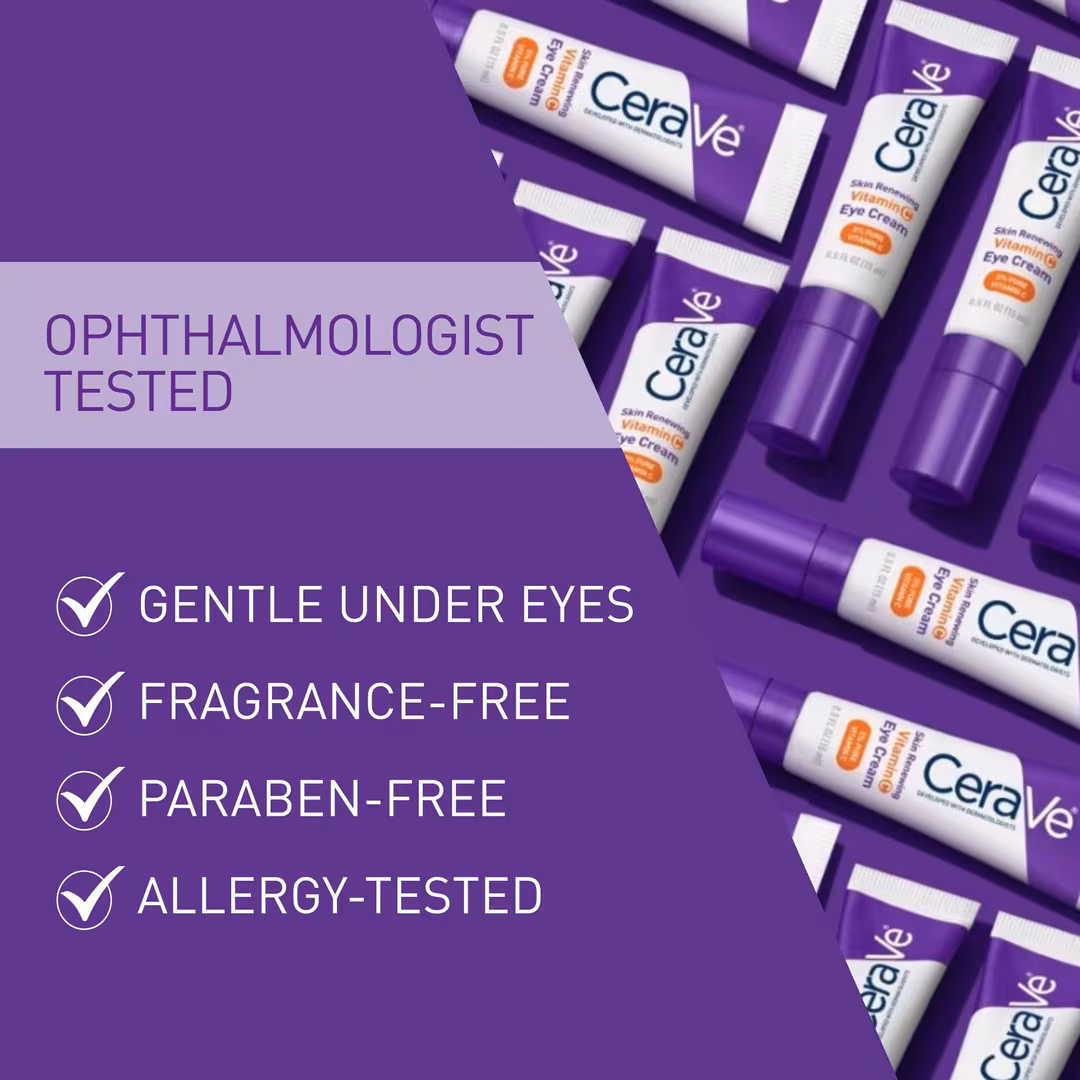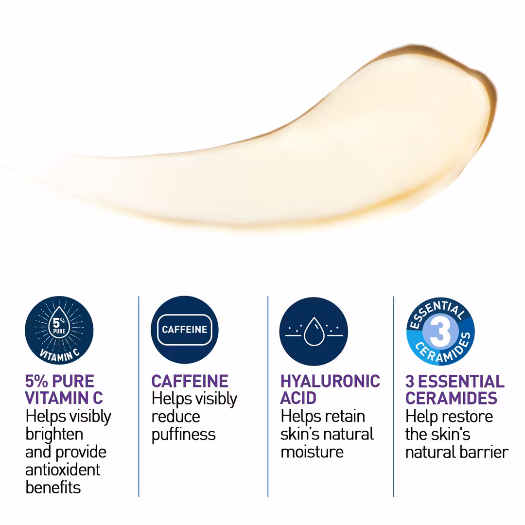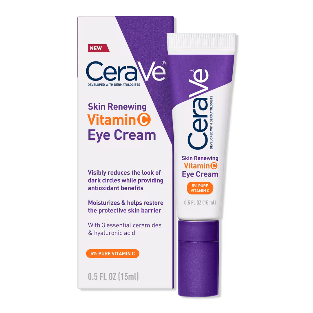 CeraVe Skin Renewing Vitamin C Eye Cream is a dermatologist-developed eye moisturizer formulated to target dullness and uneven tone around the delicate eye area. With a stabilized form of  Vitamin C, this lightweight eye cream helps visibly brighten and refresh tired-looking skin while supporting overall radiance.