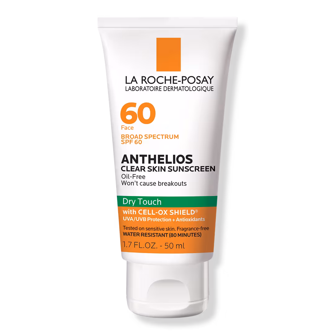 La Roche Posay Anthelios Clear Skin Dry Touch Face Sunscreen SPF 60 is a lightweight oil free sunscreen designed for oily and acne prone skin. It provides advanced broad spectrum protection against UVA and UVB rays while helping absorb excess oil and reduce shine throughout the day.
